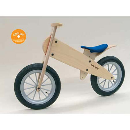Die Holzteile des LIKEaBIKE spoky bestehen aus mehrfach verleimtem Birkensperrholz. Lackiert sind sie mit einem wasserresistenten, seidenmatten Klarlack nach EN 71 (Sicherheit von Kinderspielzeug). Holzscheibenräder mit Aluminiumfelge, Luftbereifung der Größe 47-203 Die Naben bestehen aus wartungsfreien gedichteten Kugellagern, in Lagersitze aus gedrehten Aluminiumhülsen eingelassen Die Sattelhöhe ist einstellbar von 33 - 42 cm, als Zubehör ist eine um 3 cm höhere Sattelstütze erhältlich. Das Rad wiegt 3,3 kg.
