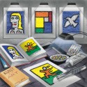 Basierend auf der alten Idee, Bilder aus kleinen Steinen oder Keramikstückchen als Mosaik zu gestalten, können mit diesem Bastelset Bilder aus kleinen Glasperlen auf Tonpapier geklebt werden.
