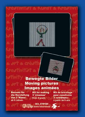 Wer hat nicht schon davon geträumt, seine eigenen Bilder zum ‘Laufen‘ zu bringen? Mit diesem Bausatz ist das möglich! Es können drei ‘Kinos‘ mit zwölf selbst gestalteten Motiven hergestellt werden.