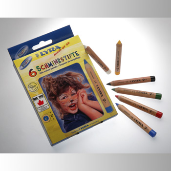 Kinderschminke, ein Sortiment mit 6 Farben/Schachtel: rot, grün, gelb, blau, weiß und schwarz""