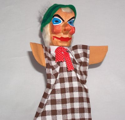 Der Kopf dieser Kasperpuppe ist handgeschnitzt, jede Figur ist ein Original! Das Kopfmaß ist ca. 10x7x5 cm.