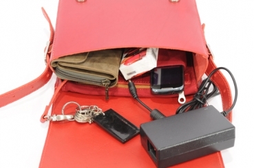 1 großes Fach mit Fach für ein Mobiltelefon, 1 schmales Fach mit Reißverschluss, 1 Vorderfach, Schulterriemen (max. 140cm lang)