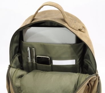 Dieser Rucksack bietet Platz für einen DIN-A-4-Ordner und ein Laptopfach bis 15"