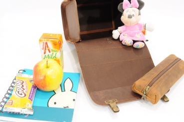 Kinder-Brottasche mit Rückenriemen, Kuhhalsleder