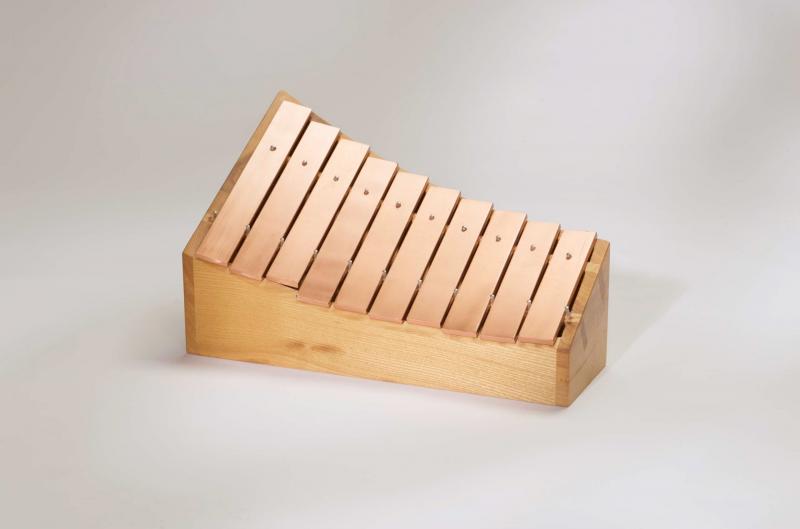 Zehn abnehmbare Klangstäbe aus reinem Kupfer bilden eine leicht geschwungene Klangwand, die durch ihre Form und räumliche Anordnung eine freie und natürliche Spielgebärde anregt. Das Kupfer erzeugt einen hellen, warmen, glockigen Ton mit relativ kurzem Nachklang. Dies kommt besonders dem Melodiespiel zugute, weil die sonst bei Metallophonen oft hörbaren Interferenzen (Reibungen zwischen zwei Tonintervallen) kaum auftreten.