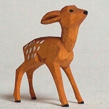 Das Kitz passt in der Größe zu den anderen Rehen und zu den Krippenfiguren des Typs 1 von Sievers Hahn.
