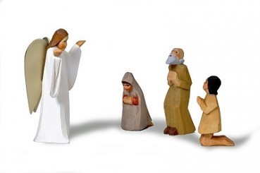Die Figuren sind aus Lindenholz handgeschnitzt und mit Ölfarben bemalt.