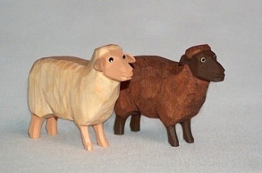 Die Figuren sind aus Lindenholz handgeschnitzt und mit Ölfarben bemalt.