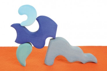 Schon die Kleinsten werden durch die intensive Farb - und Formensprache angesprochen. Je grösser die Kinder sind, umso fantasievoller und detaillierter werden die Bauten - wunderbar zu kombinieren mit Glassteinen, Seidentüchern, Sand, Püppchen ......