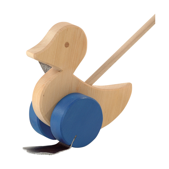 Kinder ziehen oder schieben gerne etwas hinter oder vor sich her. Mit einem kleinen Wagen lassen sich "wichtige Dinge" mitnehmen oder Sachen finden und sammeln, mit dem Pferdchen teilt es die vielen Eindrücke, die Watschelente ist ein erheiternder Begleiter. Das Kind hält sich förmlich ein bischen fest an seinem Spielzeug, das gibt Sicherheit auf den Ausflügen in die abenteuerliche Welt ausserhalb der gewohnten Umgebung von "zu Hause".
