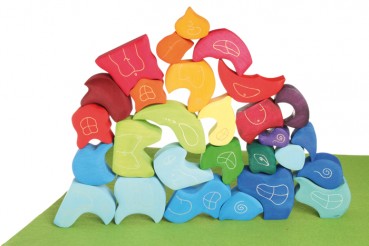 Schon die Kleinsten werden durch die intensive Farb - und Formensprache angesprochen. Je grösser die Kinder sind, umso fantasievoller und detaillierter werden die Bauten - wunderbar zu kombinieren mit Glassteinen, Seidentüchern, Sand, Püppchen ......