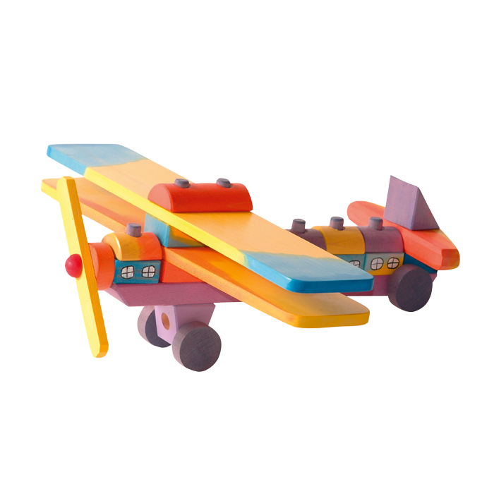 Diese Bauklötze können mittels Steckverbindungen zu einem Flugzeug verbunden werden, sie können aber auch als Bauklötze zu allerlei anderem Spiel Verwendung finden, eine Stadt, ein Haus, was immer den Kindern einfällt...