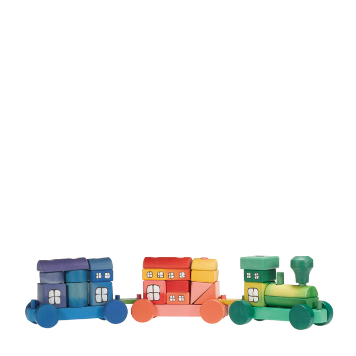 Diese Bauklötze können mittels Steckverbindungen zu einem Zug verbunden werden, sie können aber auch als Bauklötze zu allerlei anderem Spiel Verwendung finden, eine Stadt, ein Haus, was immer den Kindern einfällt...