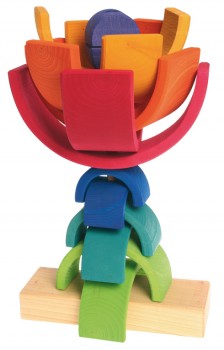 Wer Kinder beim Spiel mit dem Scheibenturm oder dem  Regenbogen beobachtet, merkt schnell wie grenzenlos die Möglichkeiten sein können, wenn Raum für Phantasie gelassen wird. Eben noch als Haus für Plastikmännchen, dann als Reitparcours für Pferde oder als Wiege für Puppen und dann kann auch nach Lust und Laune aufeinander und ineinander gestapelt werden.