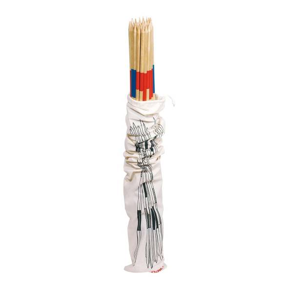 Das traditionelle Geschicklichkeitsspiel aus dem fernen Osten eignet sich besonders gut für Kinder, weil die dickeren Stäbe auch für ihre Hände schon gut zu greifen sind.