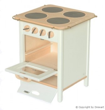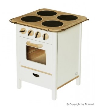Ein eigner Herd ist Goldes wert! Dieser hochwertige Kinderherd aus Erlenholz wird Ihrem Kind jahrelang Freude bereiten. Auf 4 Herdplatten kann gekocht werden, das Backblech ist natürlich herausnehmbar. Unter dem Backofen hat er ein Topffach.