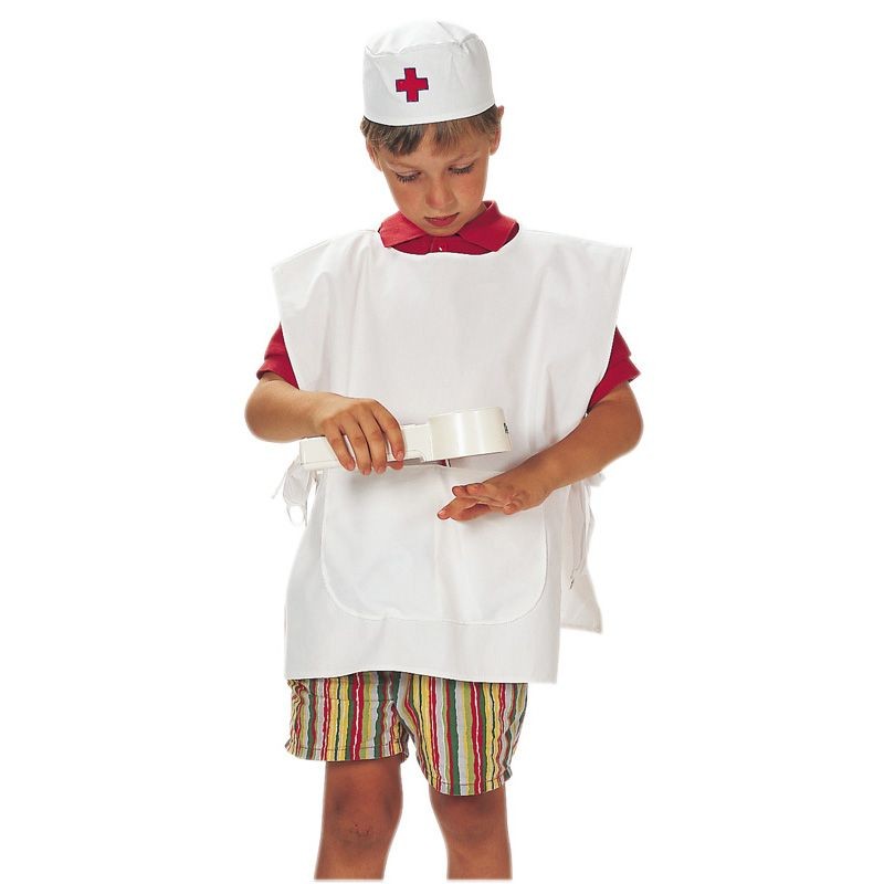 Das Set umfasst eine OP-Mütze und einen OP-Kittel.