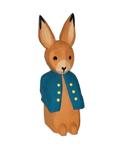 Das Osterhasenkind wird aus Lindenholz handgeschnitzt und mit Ölfarben bemalt.