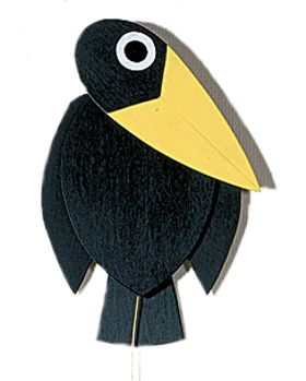 Kinder lieben die "hampelnden" Tiere, die den Ausdruck und ihr Temperament ändern. Zieht man an der Leine, wackelt der Rabe mit den Flügeln.
