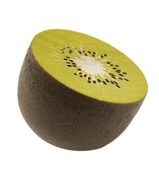 Eine süße Kiwihälfte aus Holz zum Spielen. Die Kiwi ist wie alle Früchte der Firma Erzi von hoher Qualität, sie ist aus Buche gefertigt. Die Holz-Kiwi sollte in keinem Kaufladen fehlen.
