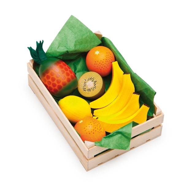 Wie in einem richtigen Laden können die Kinder mit den tollen Früchten von Erzi im Rollenspiel Kaufen und Verkaufen nachspielen und üben. Gleichzeitig lernen sie die verschiedenen wunderbaren Obst- und Gemüsesorten kennen und unterscheiden.
