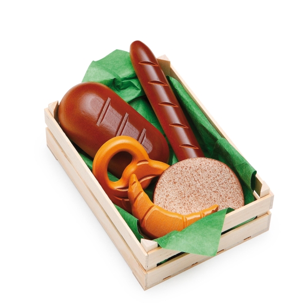 Wie in einem richtigen Laden können die Kinder mit den tollen Broten und Brötchen, Brezeln und Laugenstangen von Erzi im Rollenspiel Kaufen und Verkaufen nachspielen und üben.