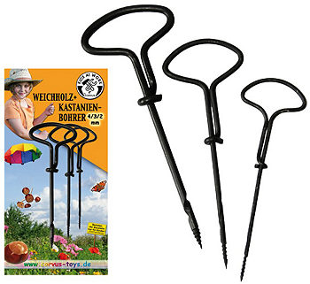 Mit den Handbohrern können Löcher in Weichholz oder Kastanien gebohrt werden.
