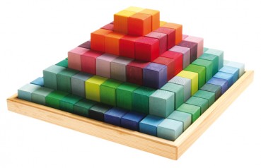 Wir bieten Ihnen hier die wunderbare Stufenpyramide der Firma Grimms aus farbig lasiertem Lindenholz in einem Holzramen an.